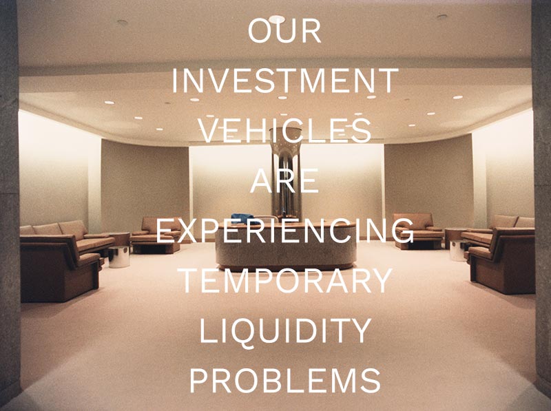 Our Investment Vehicles Are Experiencing Temporary Liquidity Problems